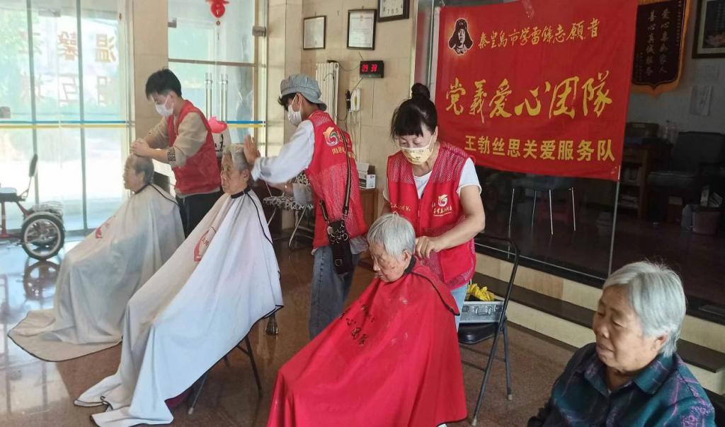 秦皇岛市党义志愿者公益服务中心志愿者为老人服务。